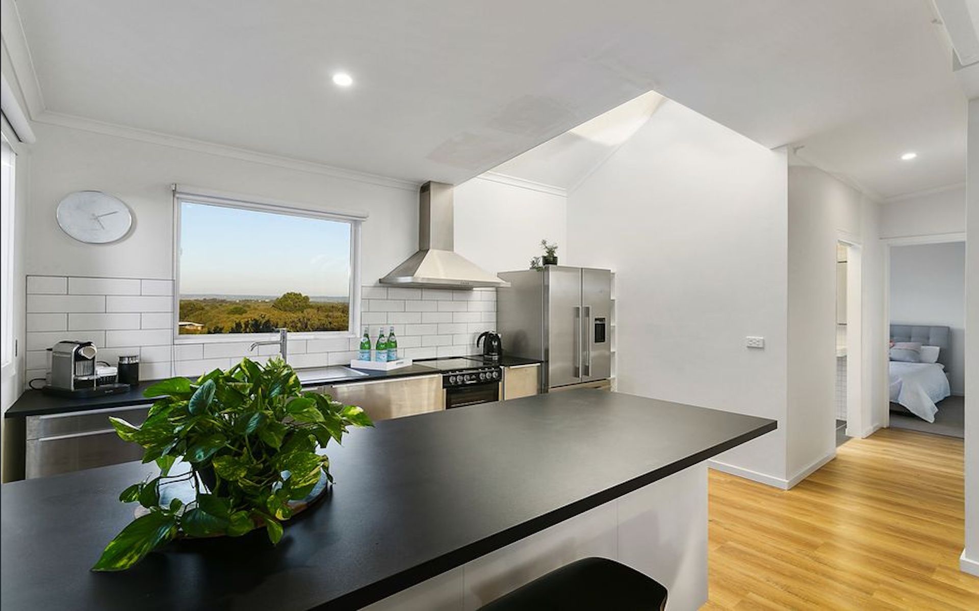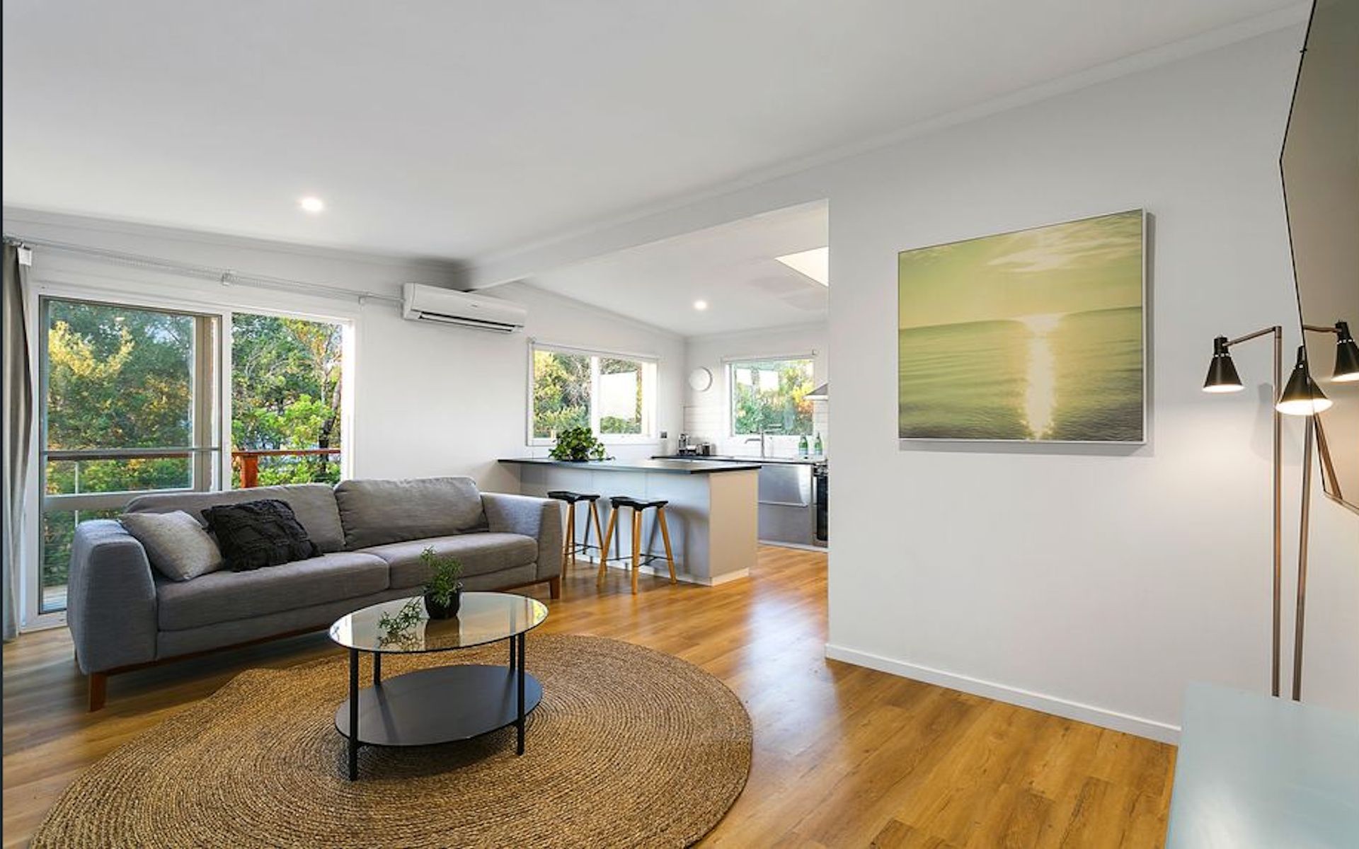 Architecturally, this home is a study in simplicity and sophistication, where clean lines and a restrained material palette create a timeless coastal retreat. Large windows and open-plan living areas invite natural light to flood the interiors, blurring the boundaries between inside and out. The design prioritises both privacy and openness, with carefully positioned spaces that encourage relaxation while maintaining a strong connection to the landscape.